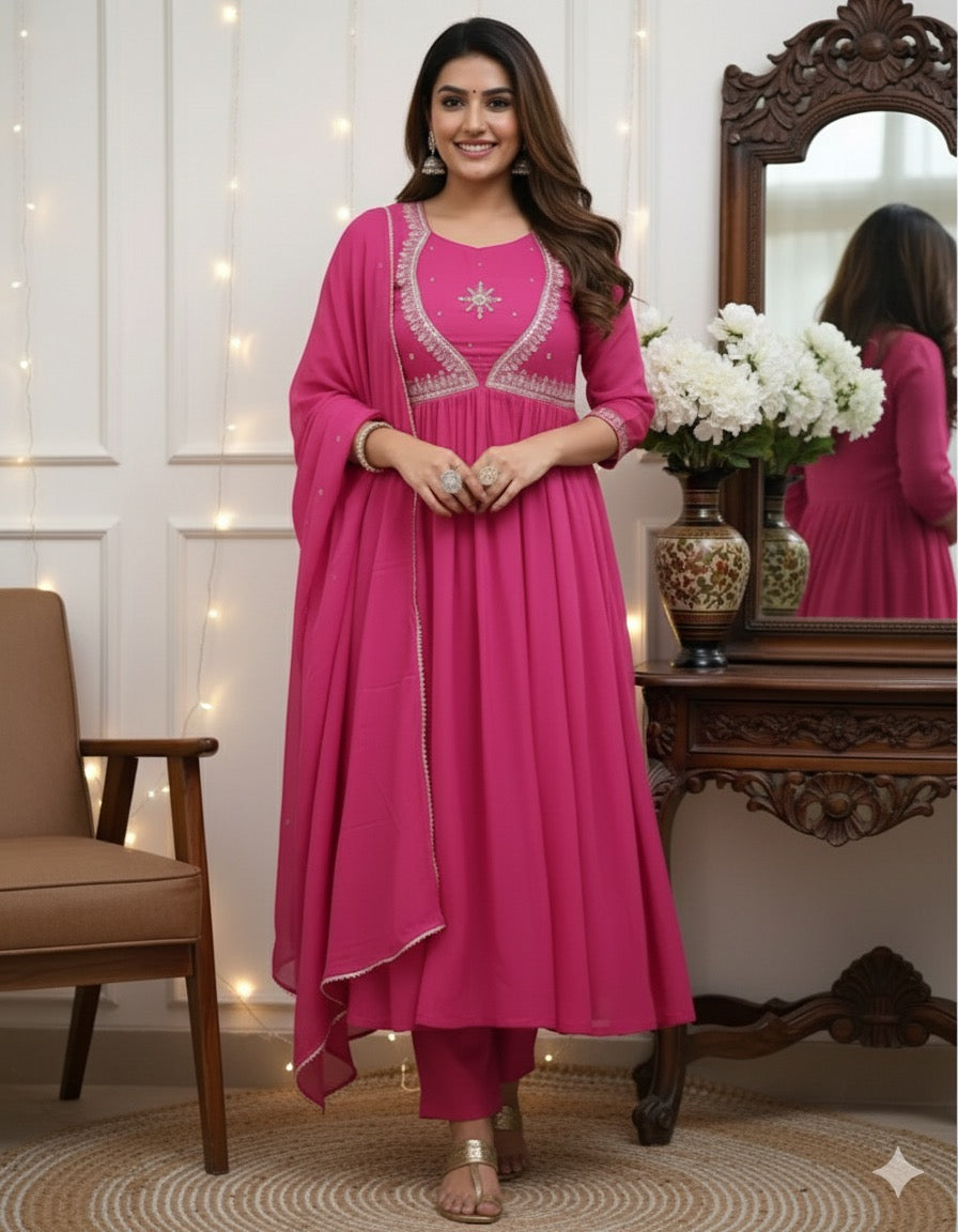 Twirling Anarkali: Flattering full flare in Red or Hot Pink.