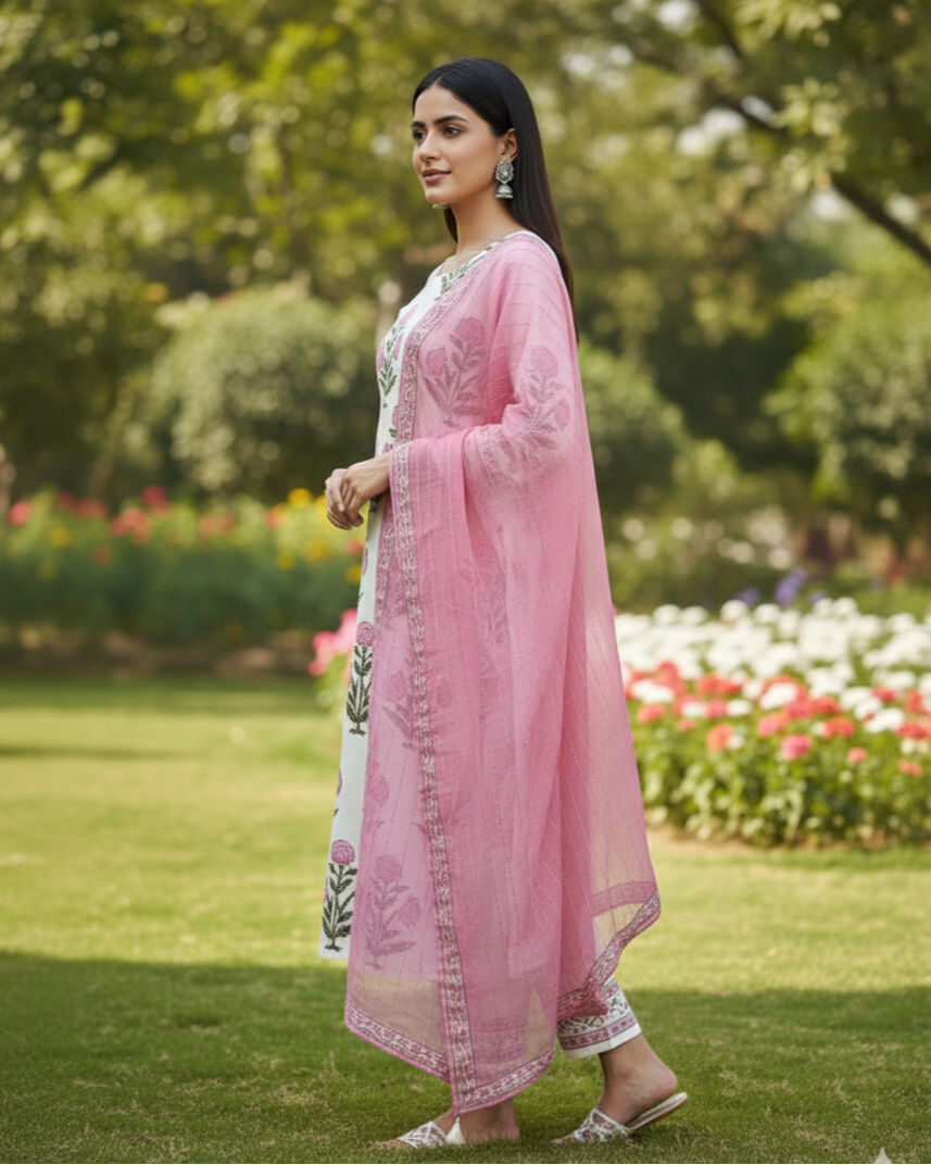 Coordinated Set: Complete three-piece look with a flowing printed dupatta.